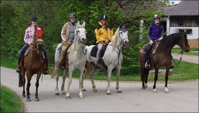 Zum diesjährigen Sternritt auf die Eichhöfe bei Hüfingen im Schwarzwald- Baar-Kreis nahm eine Reitergruppe des Gestüts 35 Kilometer mit insgesamt 1300 m Höhendifferenz "unter die Hufe". Die Zuchtstuten Basks Glamour Star, Jakimah und Elsie sowie der Wallach SGW Mashar bewiesen so einmal mehr die Vielseitigkeit und Zuverlässigkeit der arabischen Pferde. |