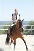Nachdem in der Jugend der sportlichen Vielseitigkeitsreiterei ihr Herz gehört hat, erweiterte Sie ihr Wissen um Horsemanship und Jungpferdetraining bei Jean Claude Dysli (www.jcdysli.de). Zurück zu den Wurzeln der klassischen Reiterei fand Sie bei Conny Niedenthal (www.cortijo-buena-vista.de) und Dr. Raoul Bravo in Spanien. Pferdegerechte und schonende Ausbildung ist ihr ein Anliegen -fern von Dogmen und Scheuklappendenken. "Ob im Westernsattel oder im Dressursattel, ob im Gelände oder in der Reitbahn- jedes Pferd soll seinen natürlichen Anlagen gemäß gefördert werden", lautet ihr Credo.