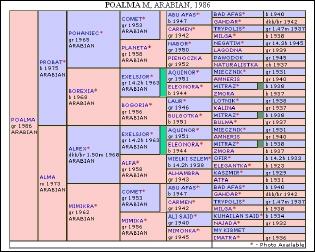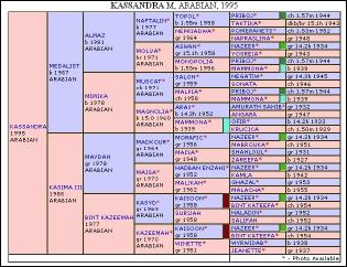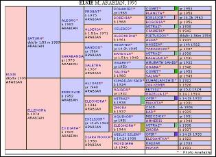 russisch-ägyptisch gezogen, in das Zuchtbuch des VZAP mit der Gesamtnote 8,4 eingetragen (Typ: 8, Gebäude:9, Gang/Korrektheit: 8, Schwung 8.4 Gesamteindruck 8,4), 2012 beim ZSAA als Prämienstute mit der Gesamtnote 7,5 eingetragen |
