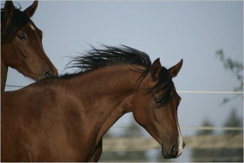 Hallo Chris, ich habe das Gefühl, Kajanah ist die Chefin in der Herde! Zumindest muss sie nur an irgendwas ran laufen und die anderen weichen sofort. Probleme hab ich so keine mehr mit ihr, wobei auffällig ist, dass sie bei höheren Temperaturen bzw. über 15 °C allgemein einfach zufriedener ist. Alles was unter 15 °C geht, da kann sie schon mal zickig werden. In letzter Zeit mache ich vermehrt mit meinen beiden Pferdls die "seven Games" von Pat Parelli. Kajanah ist super im "Friendly Game, im Porcupine Game und im YoYo-Game!". Reittechnisch bzw. Ausreittechnisch ist sie jetzt echt klasse. Sie hat zwar immer noch Probleme mit Kühen aber sonst ist sie ohne Probleme auszureiten. Schön bei ihr ist halt, wenn sie mal doch kurz durchgeht (bisher nur wegen Kühen!) ist sie sofort wieder unter Kontrolle zu bringen. Ein kleiner Ruckler am Zügel |