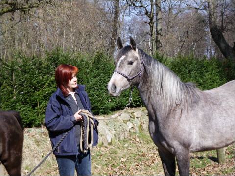 Ein paar kleine Schrammen hat Kerria in der neuen großen Herde leider einstecken müssen, aber insgesamt hat sie sich sehr gut eingelebt. Ihr Freund der ersten Stunde ist ihr Auslaufnachbar, der Appaloosa-Wallach Kimba. Aber auch mit meinem Hisham hat sie sich sehr gut arrangiert. Sie haben auch schon "Fellkraulen" mit einander gemacht. Wenns Futter gibt ist mein "Alter" etwas futterneidisch, da muss man alles gut und gleichmäßig verteilen, aber sonst ist alles so gut geworden, wie ich es mir gewünscht habe, und dass schon nach einer Woche.