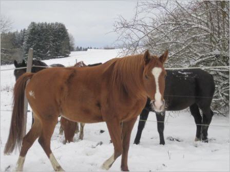 Ich habe einige Fotos von Candor im Schnee gemacht. Ich hoffe, die Qualität der Bilder ist einigermaßen gut. Wir haben in den letzten Monaten sehr viel zusammen unternommen und er entwickelt sich zunehmend zu einem sehr zuverlässigen Geländepartner . Aber auch bei der Arbeit auf dem Reitplatz macht er mir sehr viel Freude. Wir haben mit Trail-Übungen angefangen. Darin scheint er seine Stärken zu haben. Er kann sich gut konzentrieren und denkt mit. Ansonsten ist er auch für Späße aufgelegt und ist für jeden Quatsch zu haben. Ein Pferd, wie ich es mir immer gewünscht habe!!! Vielen Dank dafür.